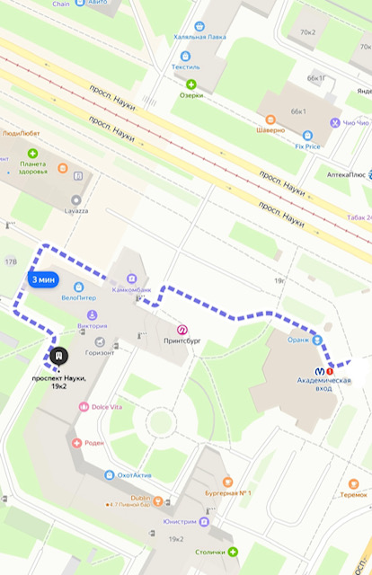 пр. Науки д. 19 к 2 пом. 45 Н. Вход с обратной стороны дома за метро.